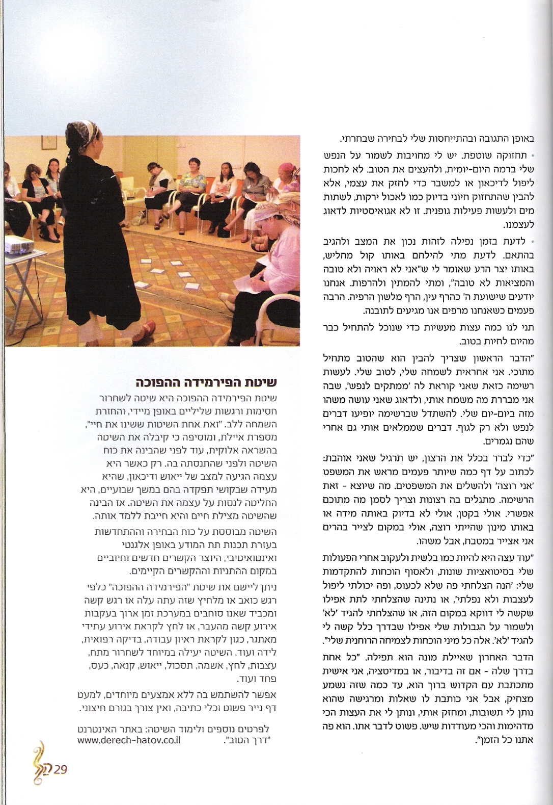 התכנים הנלמדים בסדנא של ריפוי בדרך הטוב, ללימוד שיטת "הפירמידה ההפוכה" אינם נלמדים באף דרך אחרת, לא באתר דרך הטוב, ולא בפגישות אישיות אלא רק באמצעות סדנאות מתקדמות, פרונטאליות או אינטרנטיות.