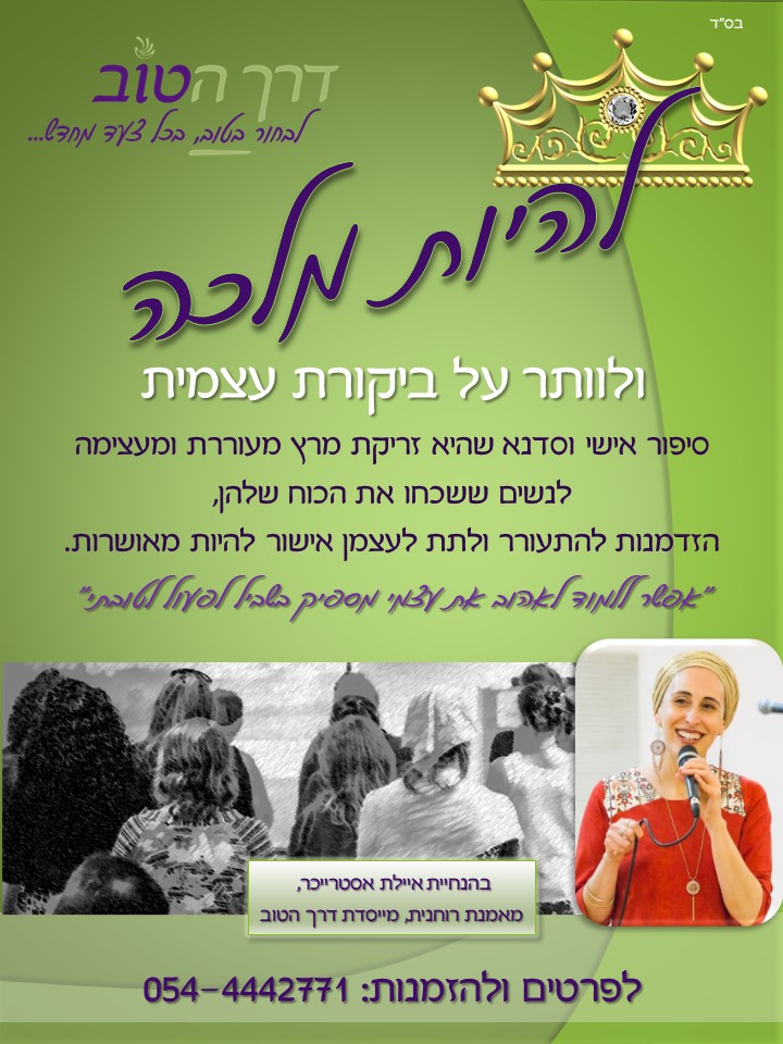 מנטישה עצמית להערכה עצמית, להיות מלכה להיות מלכה – על ערך עצמי ואהבה, דימוי עצמי ואושר